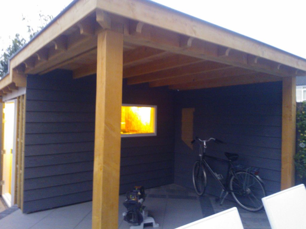 Tuinoverkapping, verbouwing van de bestaande schuur en een klassieke poort.